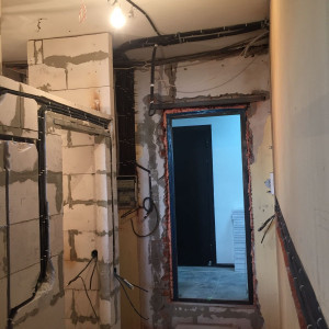 Проведение внутренних работ. Включает в себя штробление стен для укладки электрокабеля, сверление отверстий.